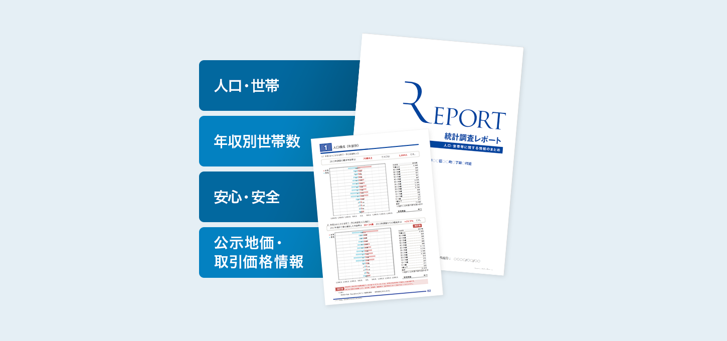 | [統計][土地][周辺環境] 3つのレポートセット |
